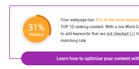 The higher your Matching Rate Score % is, the more green keyword boxes will be ticked. And you surely want to achieve that. By implementing those keywords in your content, it’ll help you greatly in your ranks.